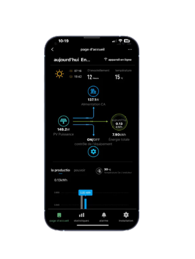 Installez votre station en un clic, et produisez immédiatement votre propre électricité verte.